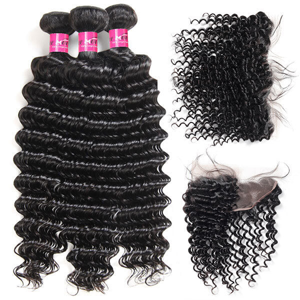 Deep Wave Bundles with Frontal Peruvian Hair 3 Bundles with 13x4 Lace Frontal Closure