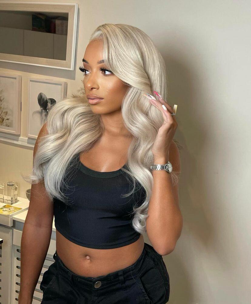 Item:613 Blonde with Ash Blonde lowlights Body Wave Hair 13*4 Lace Front Human Hair Wigs