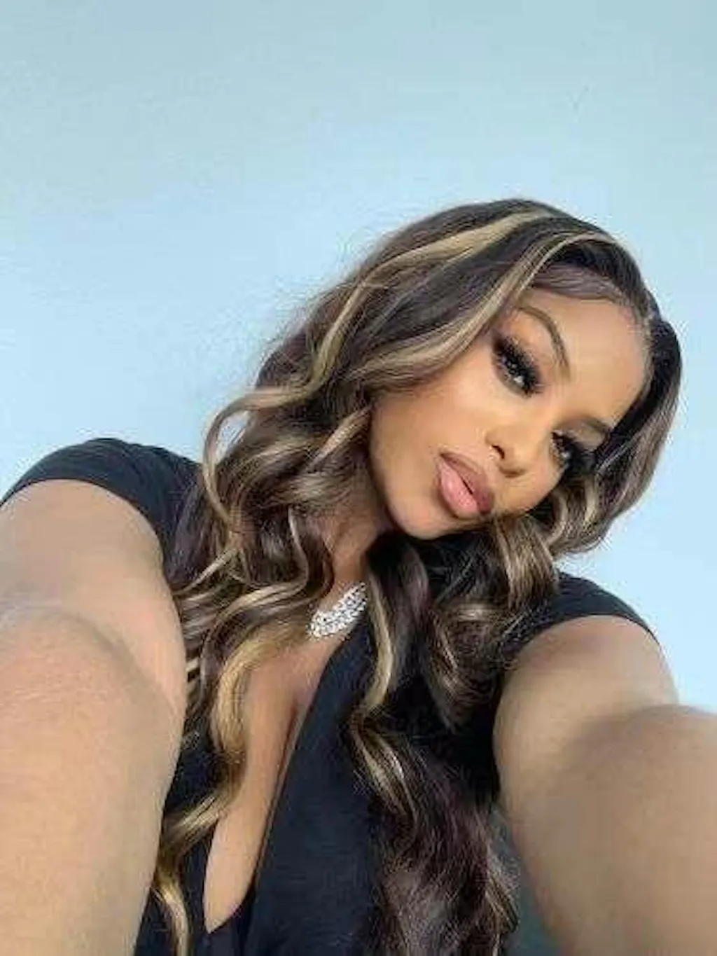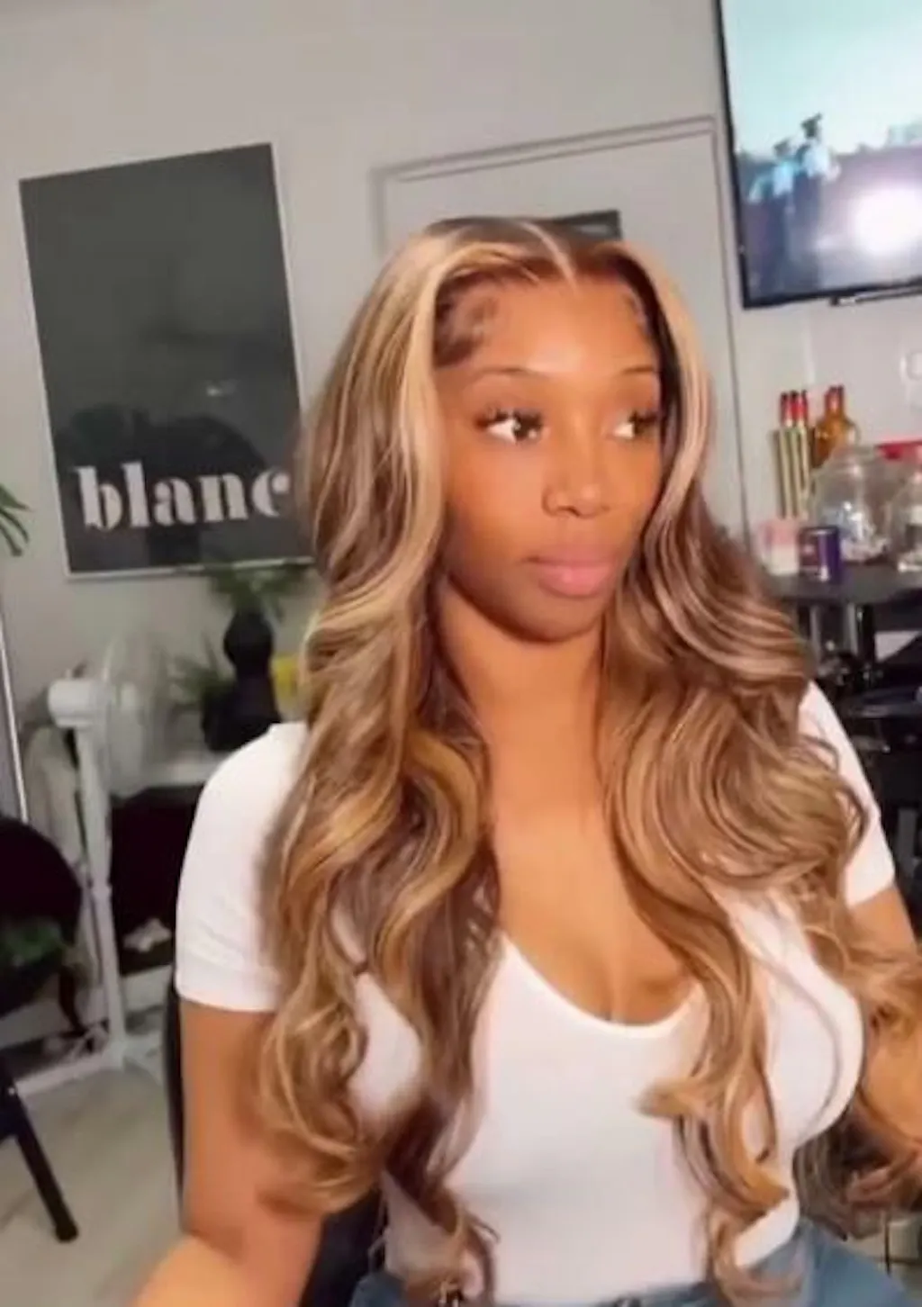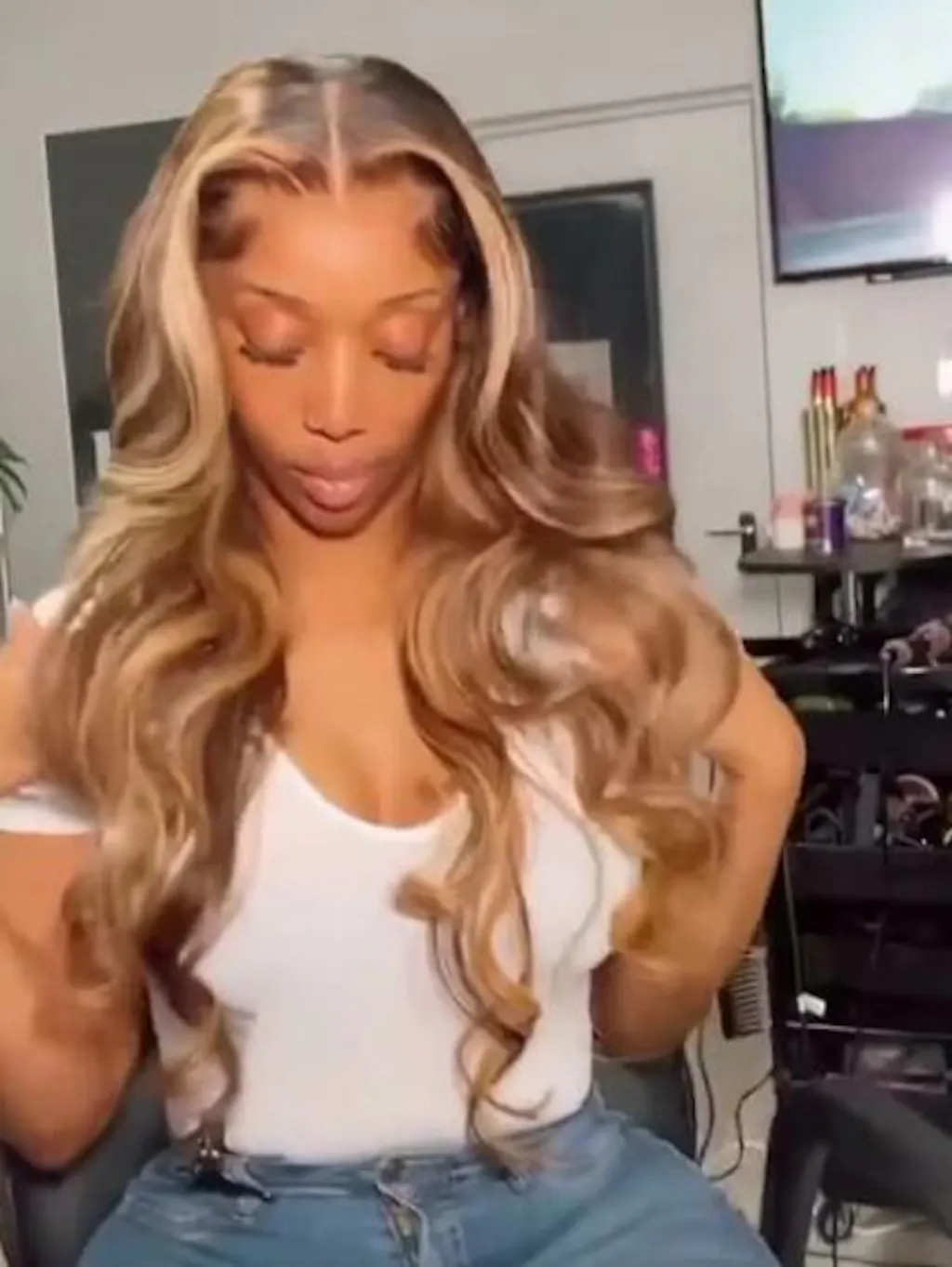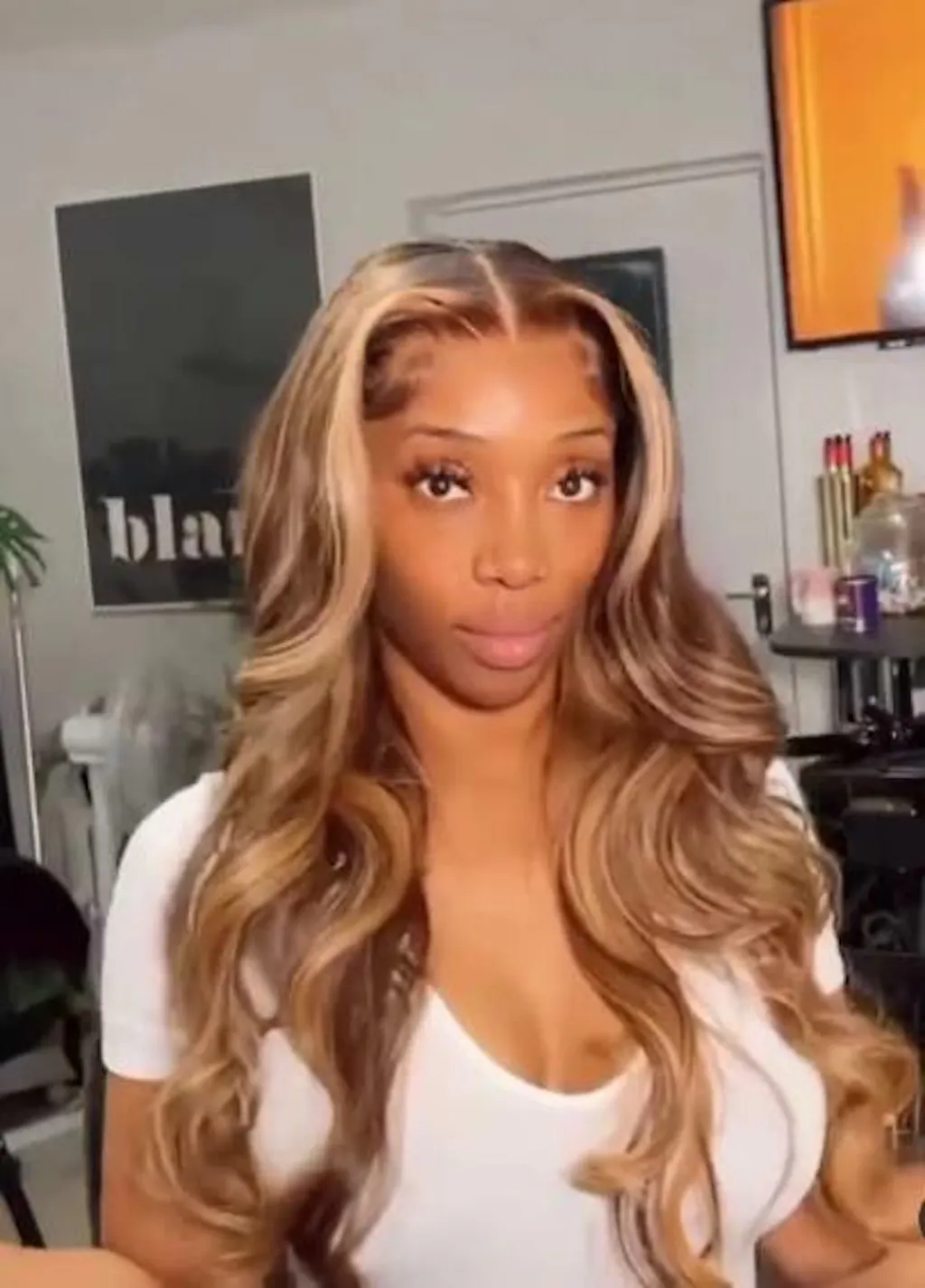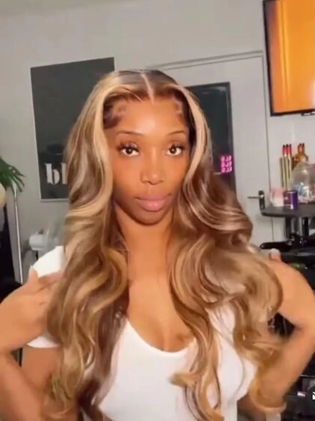 Item: Body Wave Highlights Colored Hair 13x4 Transparent Lace Wig Piano Color
